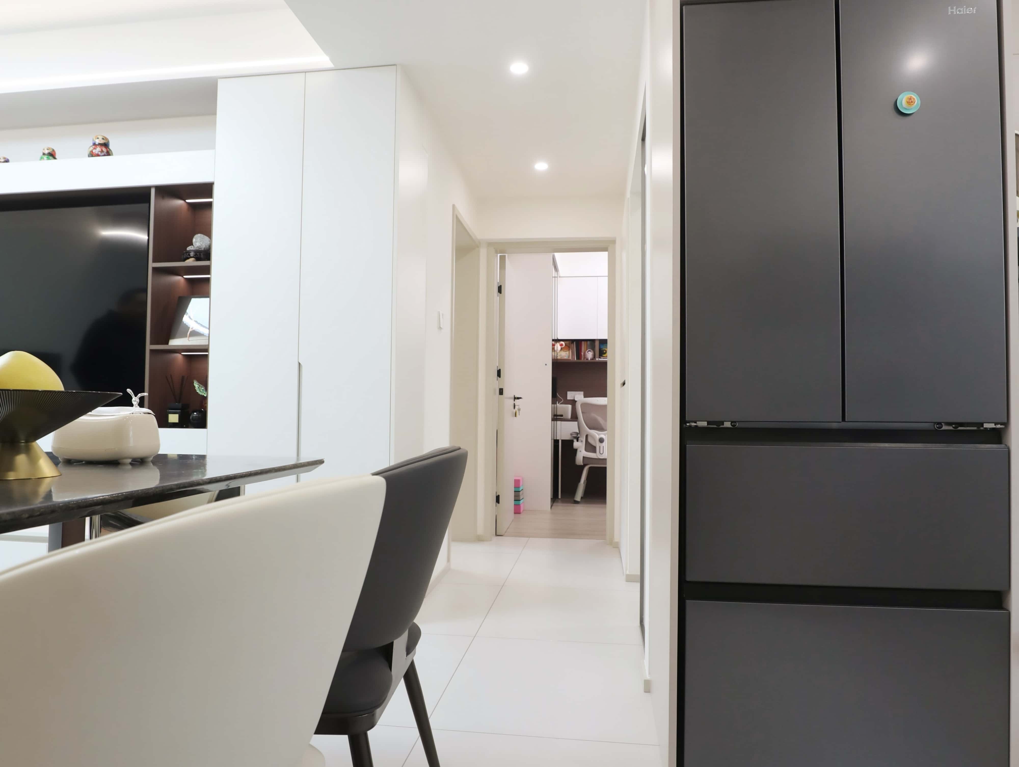 这套房子建筑面积80㎡,套内面积55㎡,一条4m长的过道,生生将家“切”成两半。加上错位阳台的布局,整个家的采光和通风成了大问题,四分之三的空间都显得闭塞、昏暗。另外,家里有孩子,储物空间也要备够。这是赵小姐第一次接触装修,她在我司监理朋友的引荐下,将这套老房交给了红马赢装潢,并由首席设计师周桂萍老师亲自操刀。