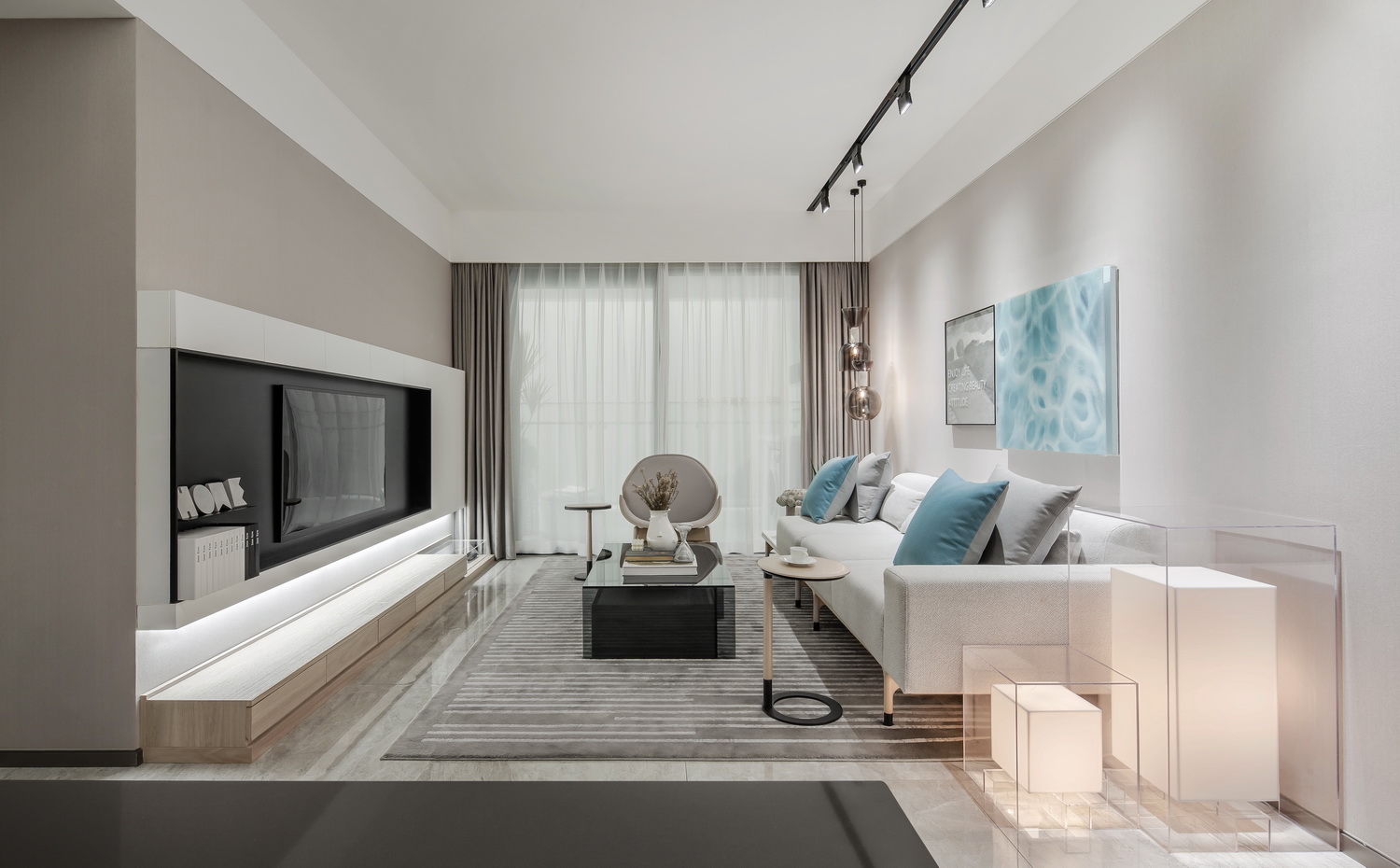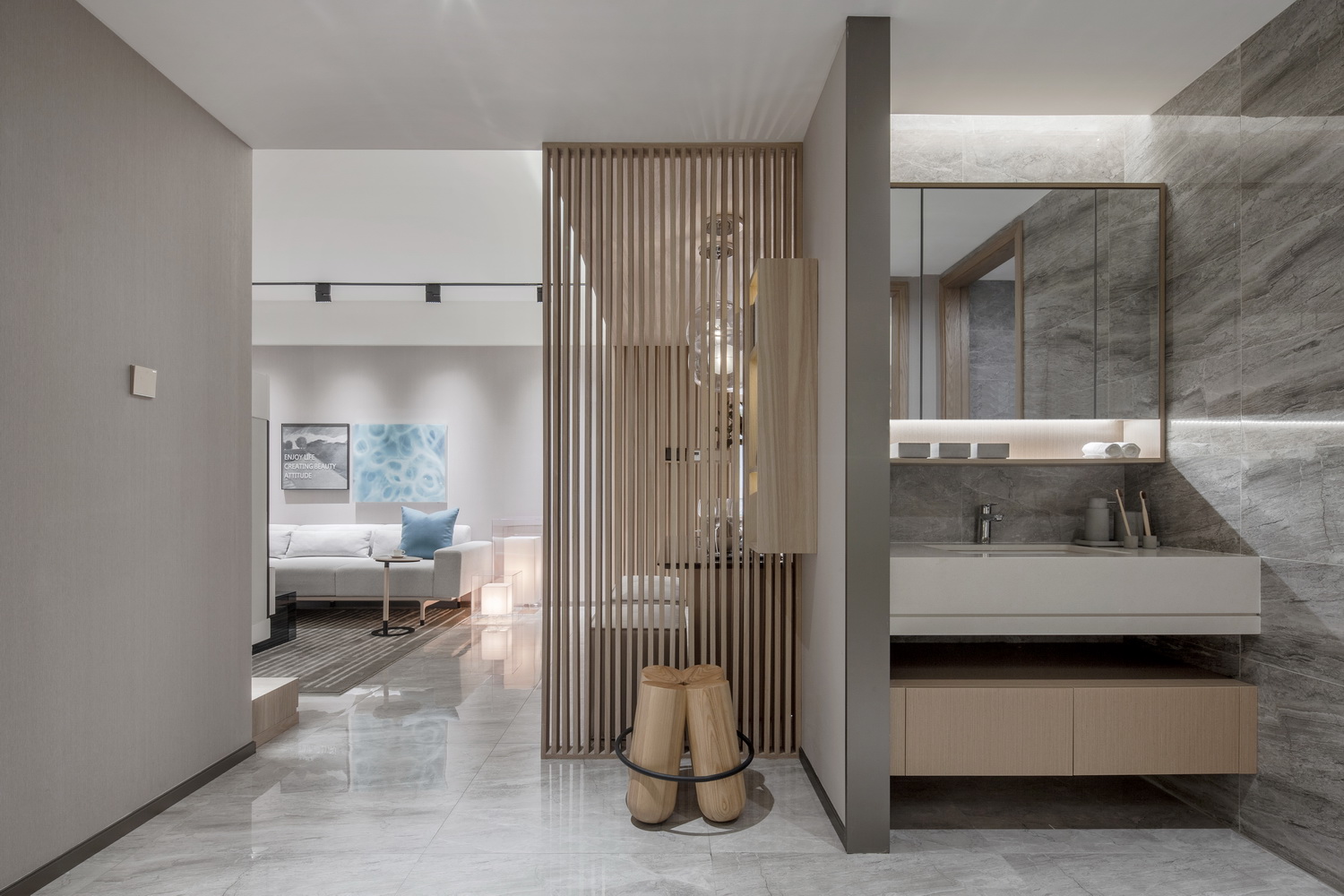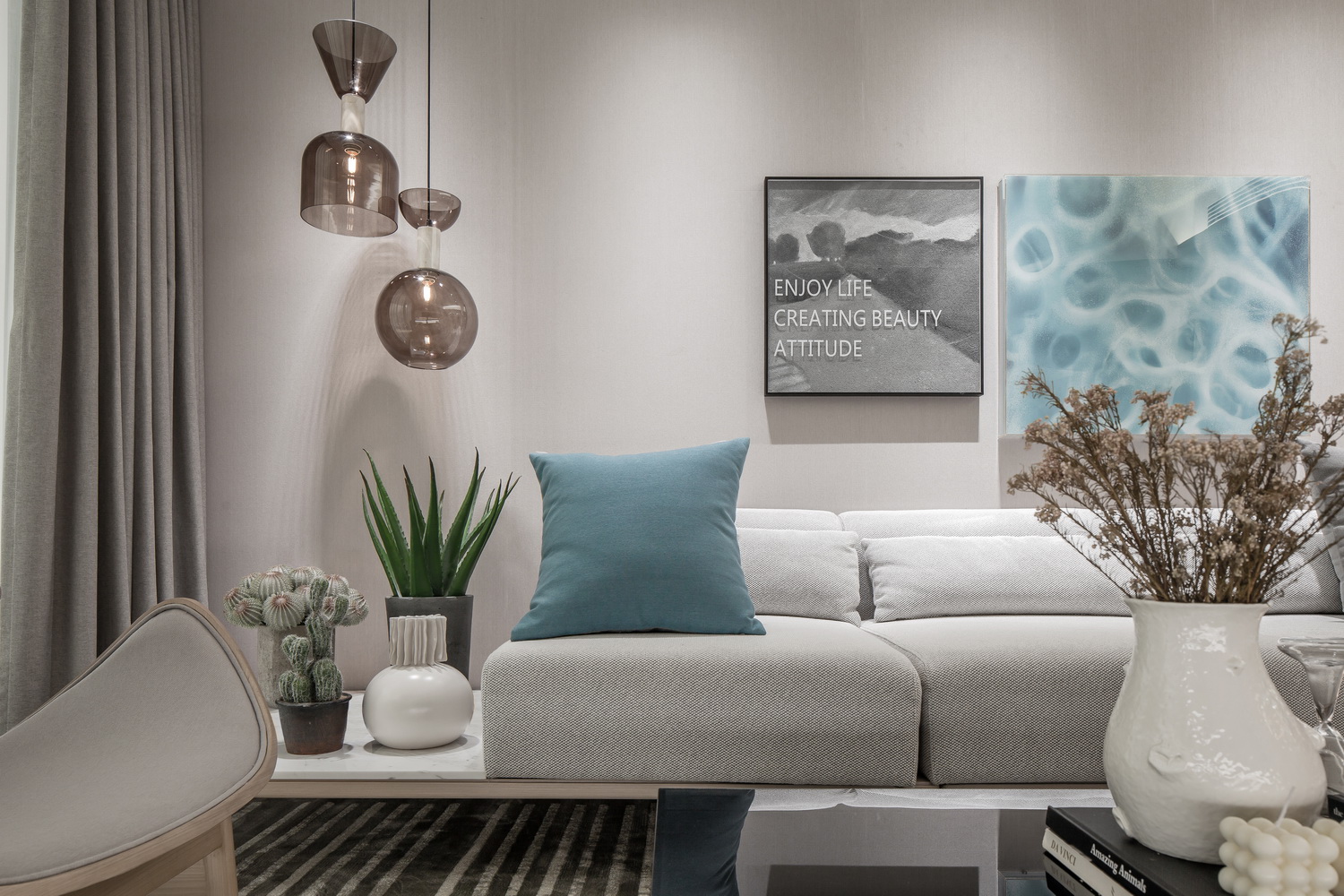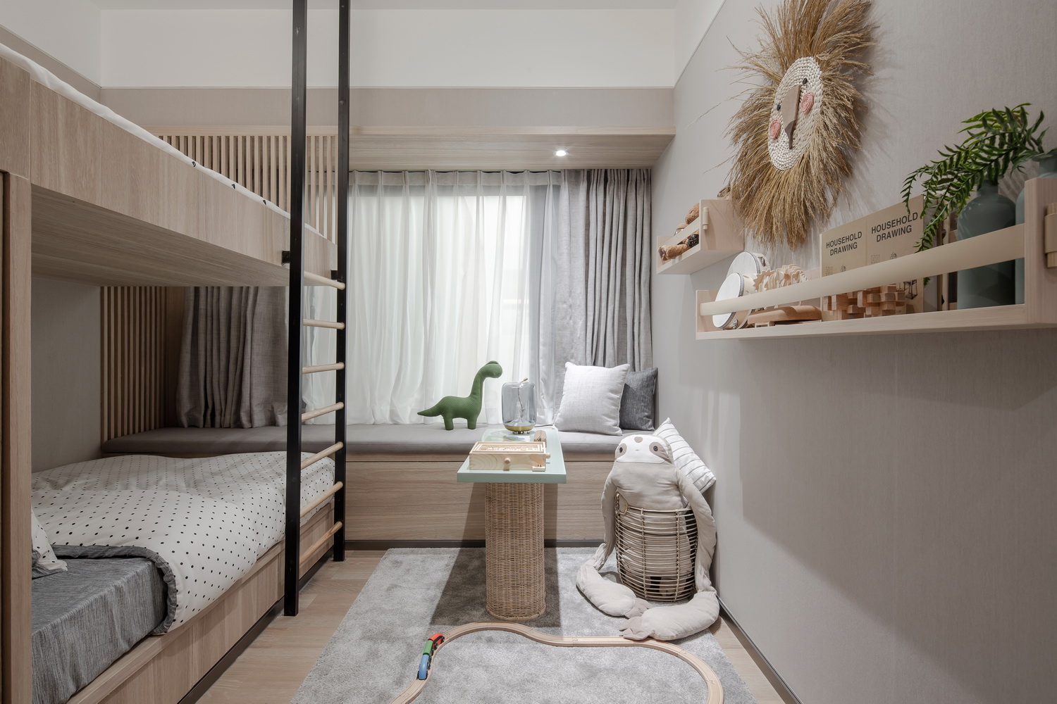 呈现出一个和而不同,多元混搭的家。对应不同主体,各种主题在不同空间产生共鸣,又各自鲜明
