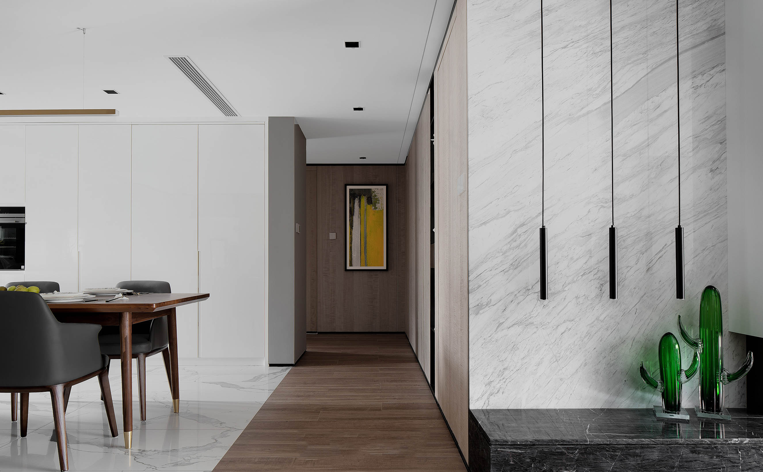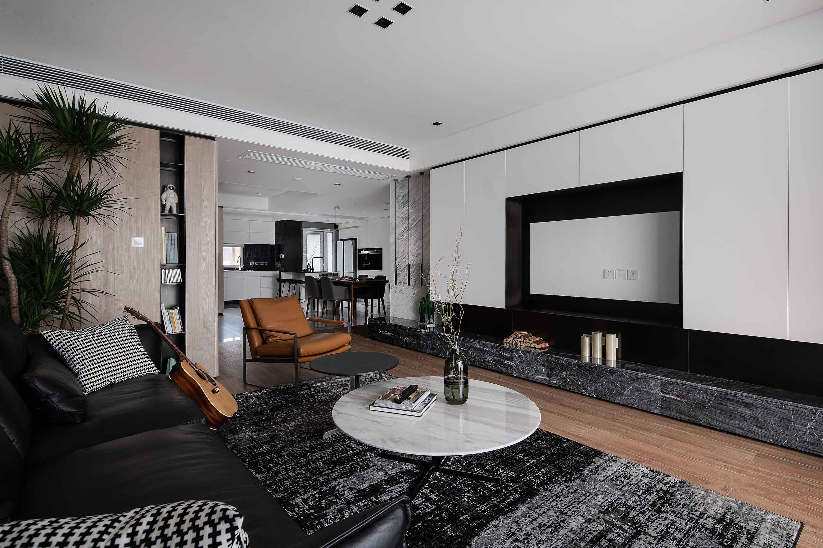 设计着重于思考人们生活与环境的多层级关系,借鉴黑白影像的哲学,剥去热带缤纷旖旎的色彩,褪去环境喧嚣的表象,发掘居住者最真实的诉求,多层次展现生活的真实轮廓,以及空间自身蕴含的能量与内力。