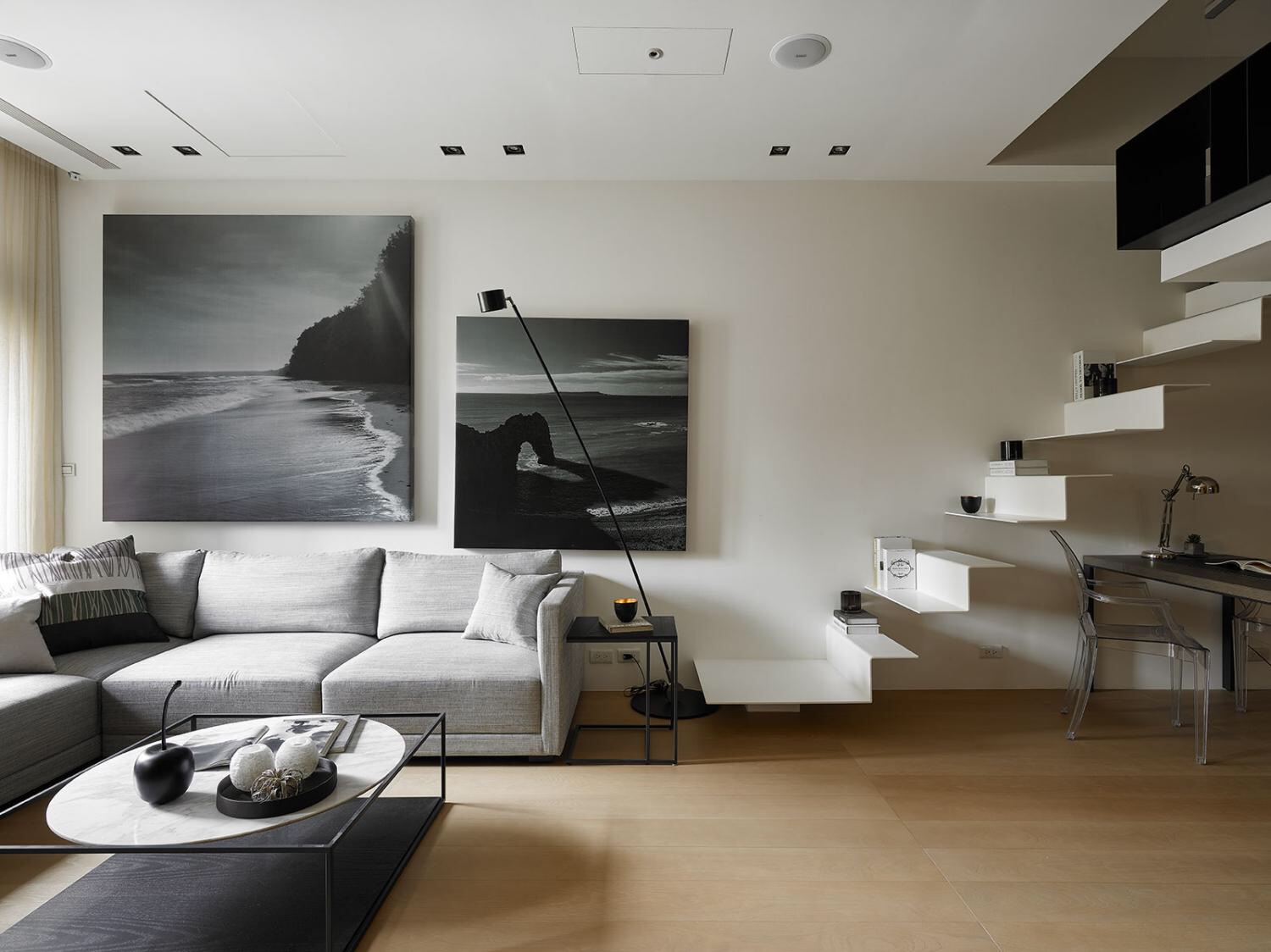 少了木质元素的北欧风,似乎就不是我们映像中的北欧家居了。木质材料的温润,搭配空间摆放的绿植,带来了自然清爽的感觉,空间里更显简约、洁净!