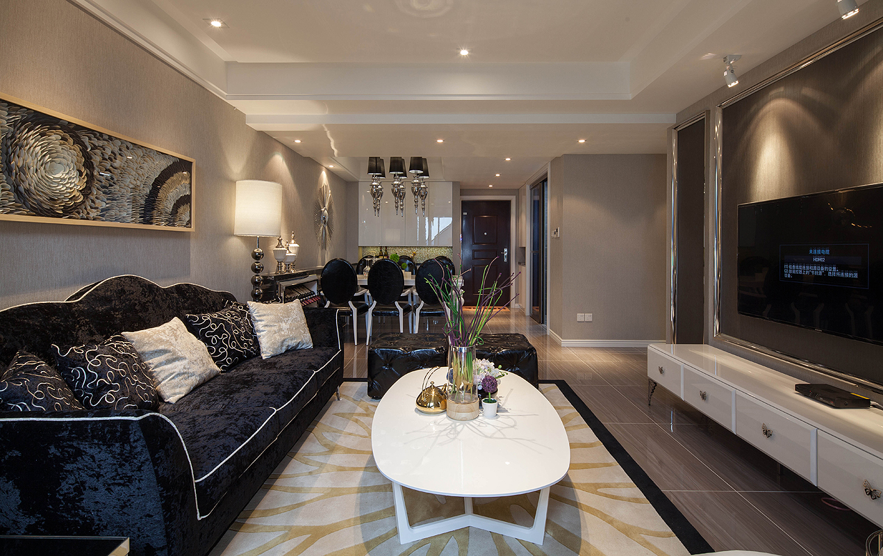 简欧风格多以象牙白为主色调,在颜色搭配方面遵从浅主深辅的原则,这种搭配可以很好的显示简欧风格的清贵和优雅。另外在用地毯、窗幔、壁纸等饰品进行装饰,既展现出欧洲传统文化的深厚底蕴,又对现代元素进行了一个吸收,简化了线条,深化了家装的实用性,整个空间质朴与简约完美的融合在了一起