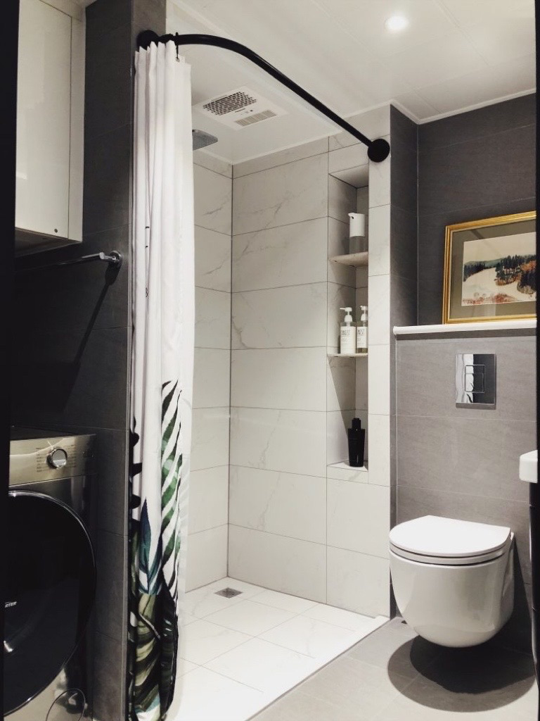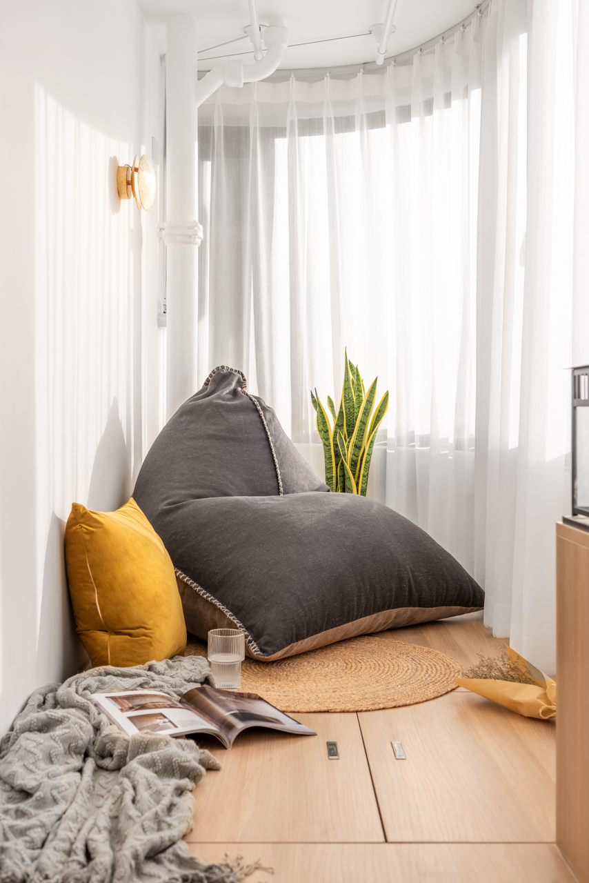 灰色填充部分为新建墙体,景观轴连接餐厅、卧室门至阳台,客厅三面采光,扩大卫生间,设置了独立的洗衣区域,保证了足够大的淋浴区,宝宝洗澡无忧,40mm大地台兼具储物、晾晒、休闲、运动四大功能。尽力达到业主需要!