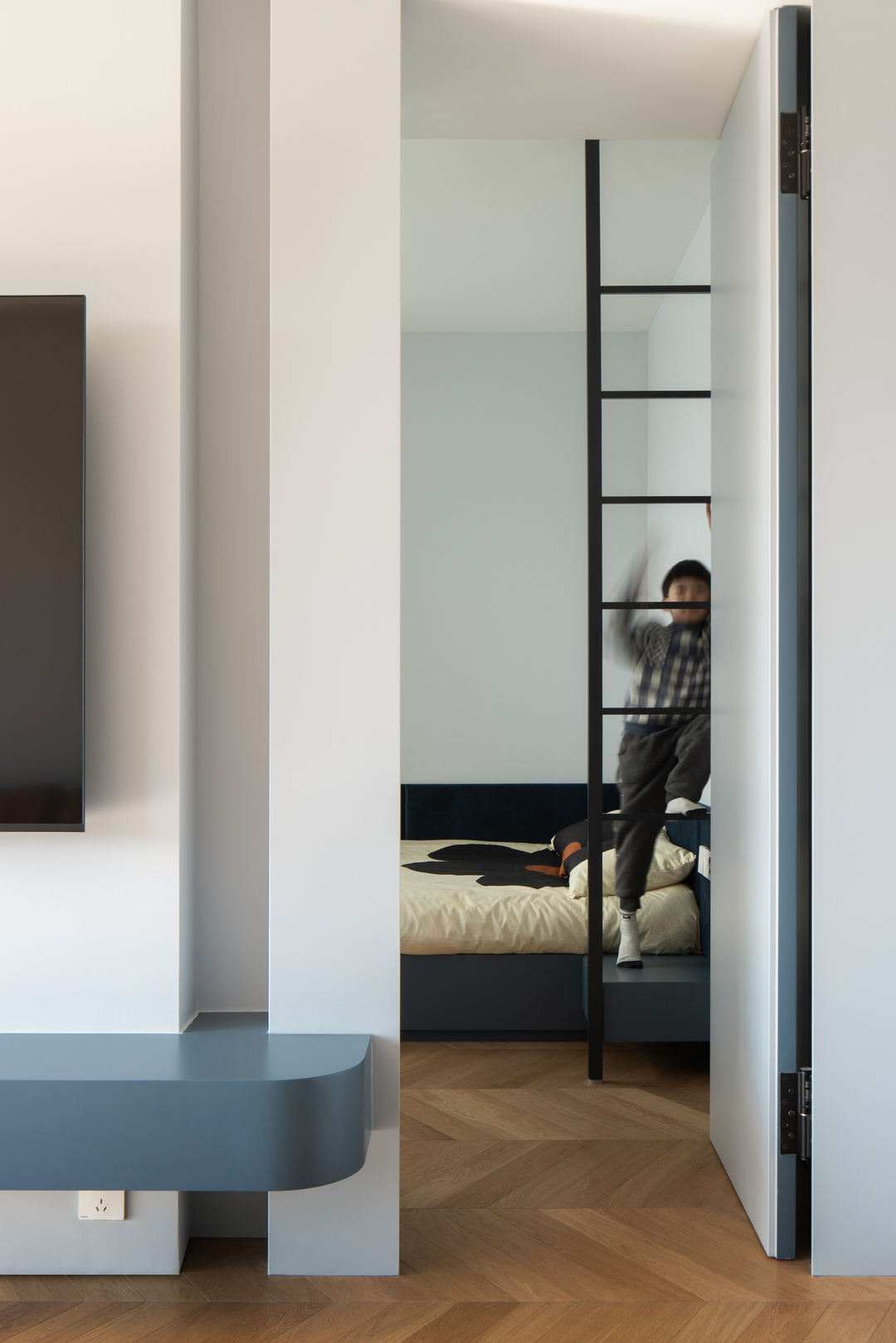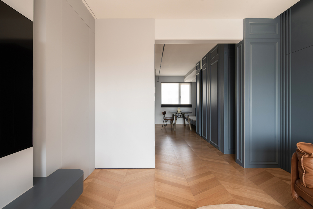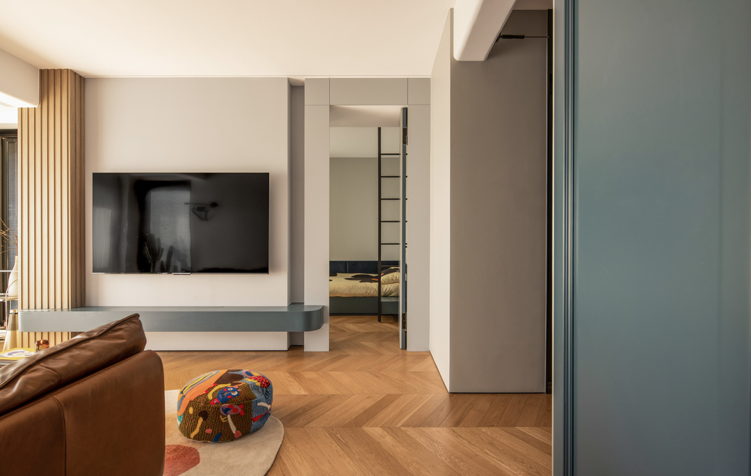 很多人钟爱小家,因为她总是平易近人,没有距离的隔阂,家人彼此贴近,温情自由流淌。 业主是热爱生活的年轻夫妻,还有一个活泼好动的男孩,嬉笑玩乐是一家子的日常写照。为此,我们在设计中加入了更活泼的色彩和装饰元素,让空间跳脱一些,灵动一些,来契合这有趣的一家人。 79㎡的家,没有拥挤,却有脉脉温情。