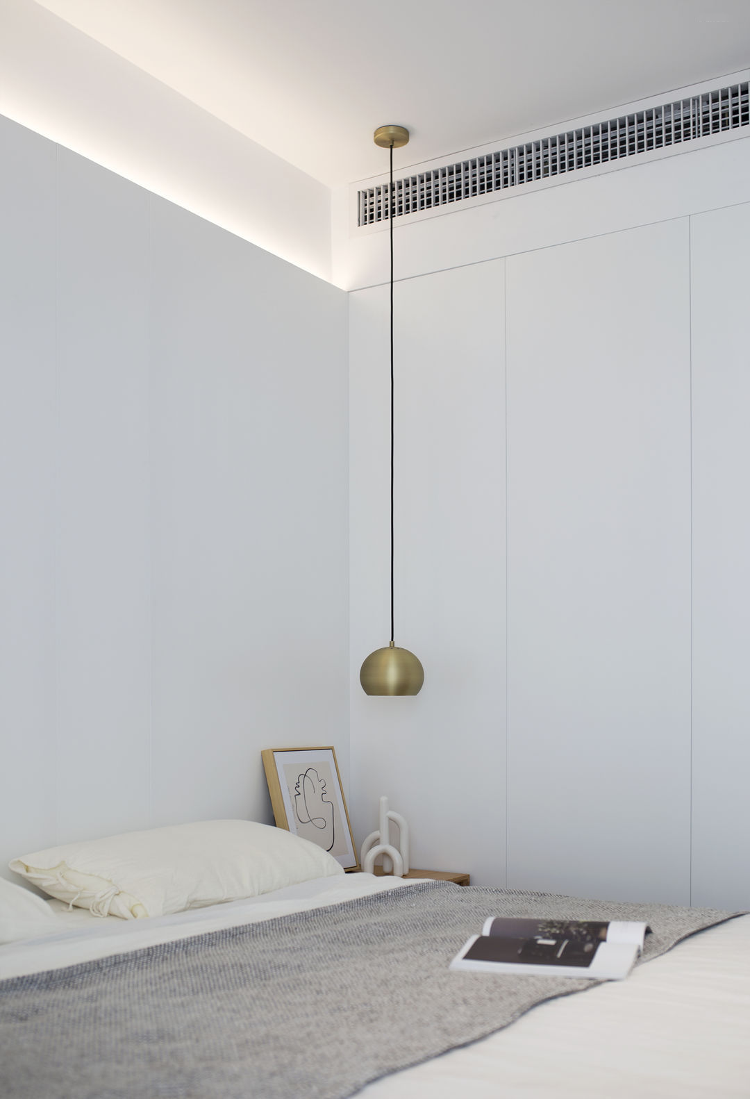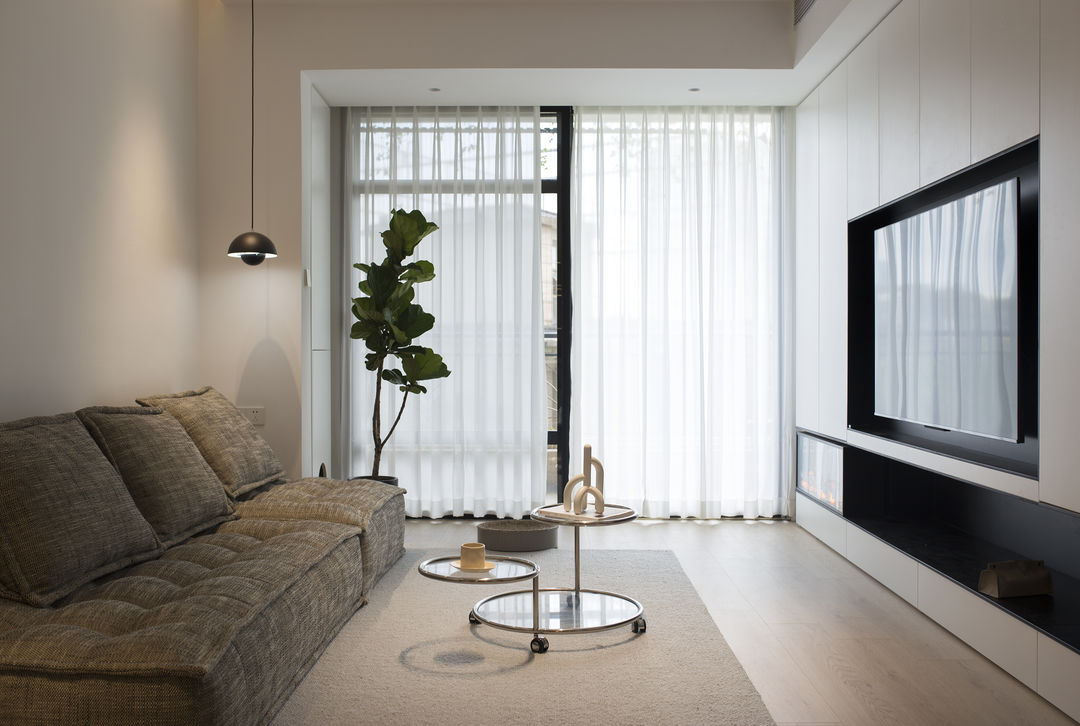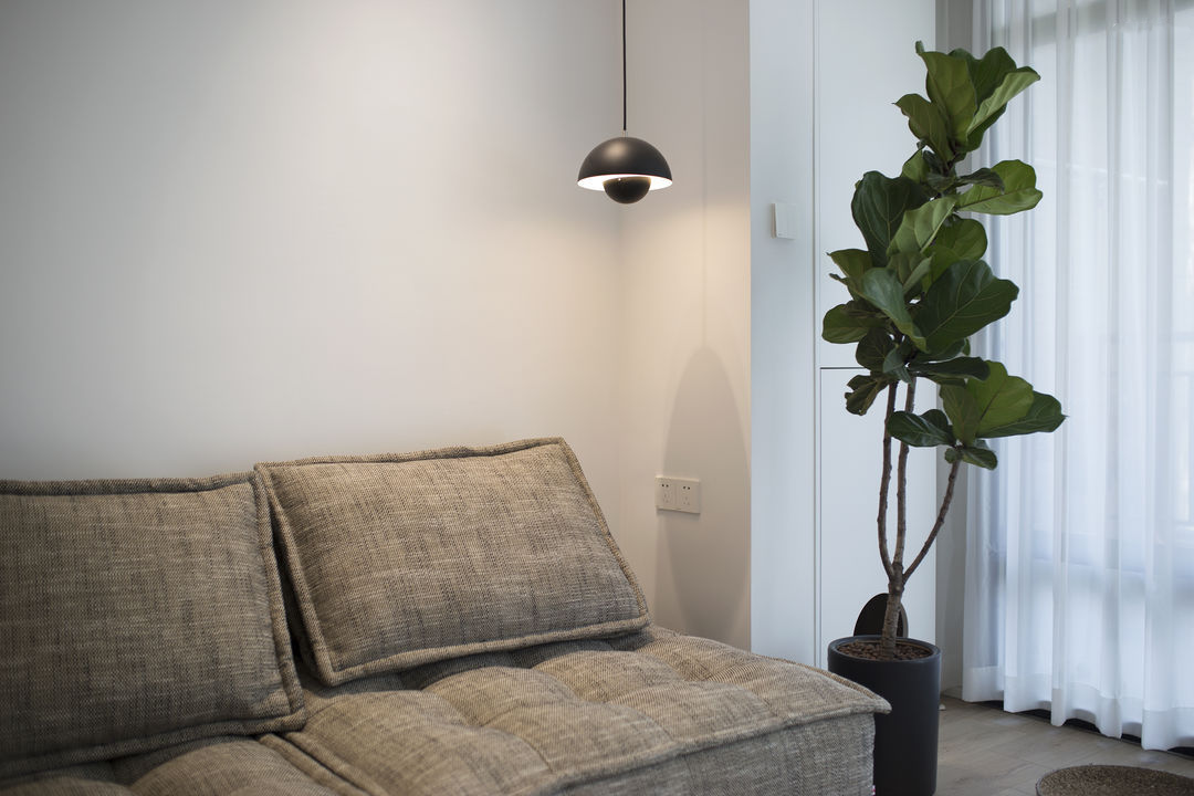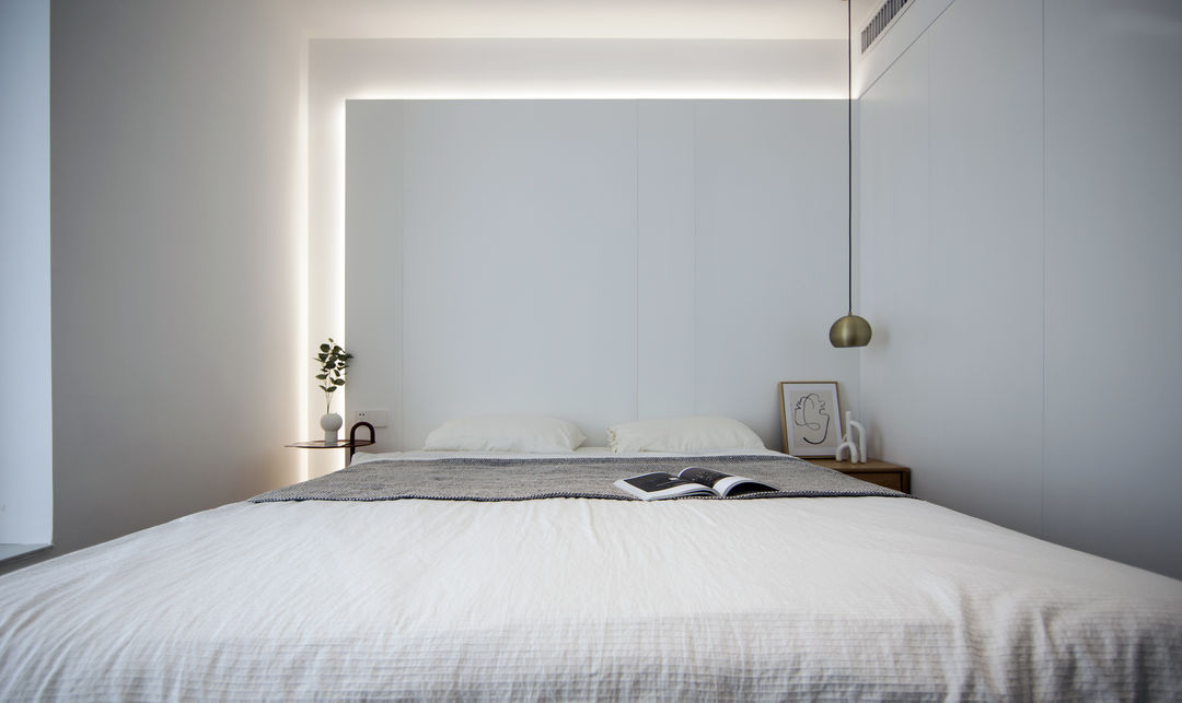 家是生活的写照: 有人认为充满烟火气的油盐酱醋是家;有人认为整齐的空间布置是家。 这是一套新婚夫妇在上海的首套小家,对新家充满了期待。他们也是拥有3位喵星人的铲屎官,这是一件多么幸福的事。 客户最初的对家的幻想就是尽可能的充斥满白色,在有限的预算情况下,大方向的调性尽量是往极简上面靠拢, 带着他们向往的设计装修之路就开始了。 设计师认为白色是兼容万物的颜色,它可以让家里的成列更为自由。 从头到尾,