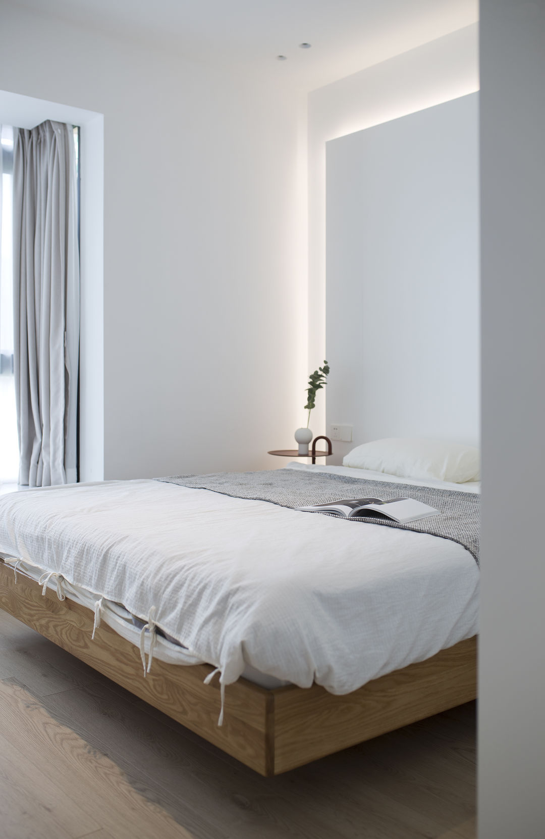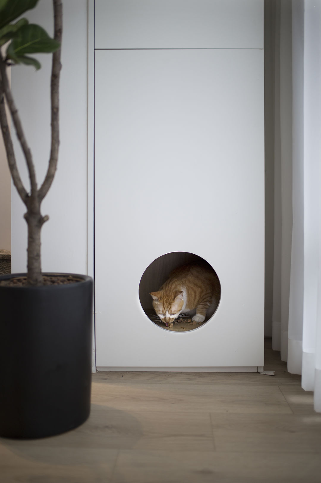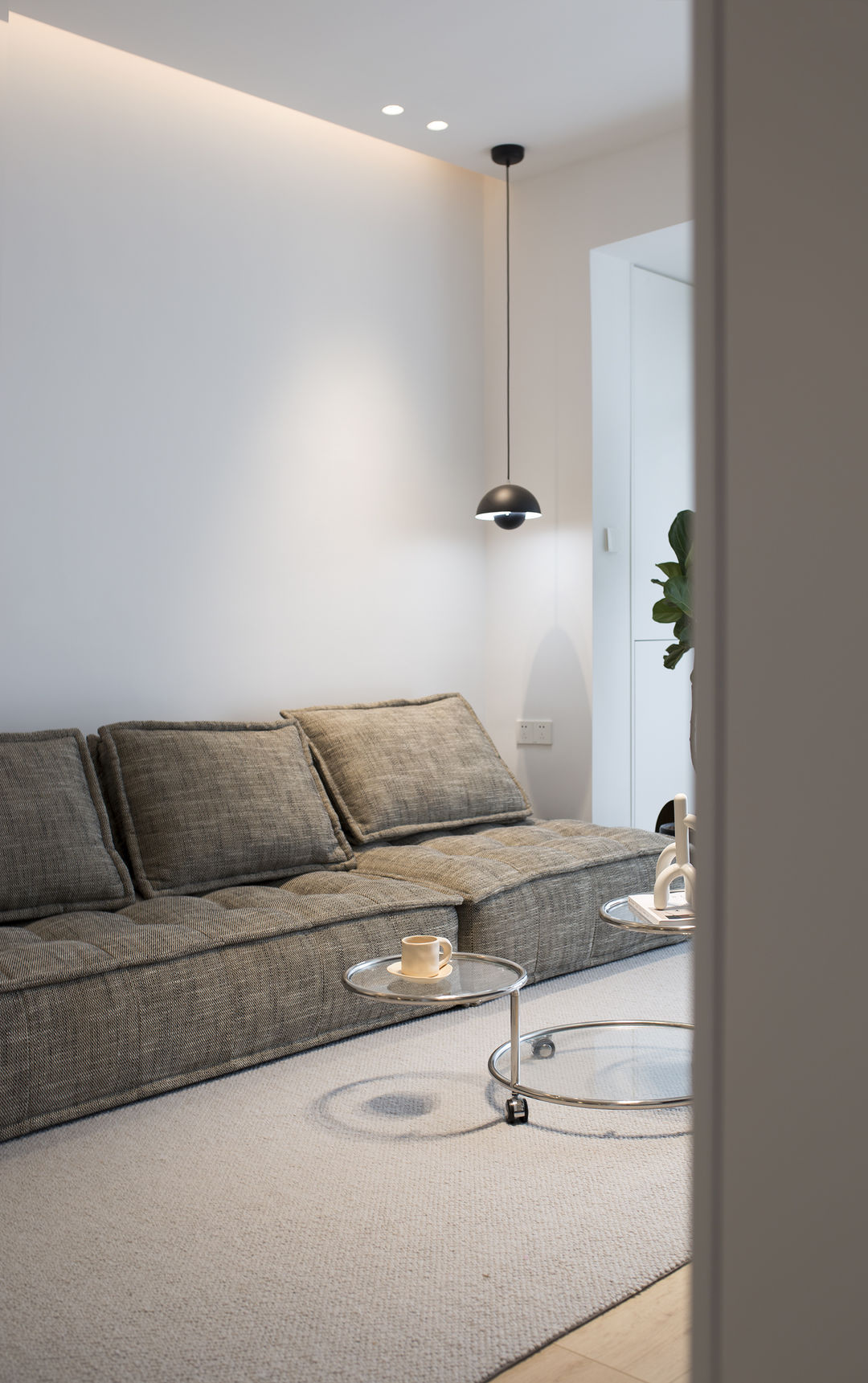 家是生活的写照: 有人认为充满烟火气的油盐酱醋是家;有人认为整齐的空间布置是家。 这是一套新婚夫妇在上海的首套小家,对新家充满了期待。他们也是拥有3位喵星人的铲屎官,这是一件多么幸福的事。 客户最初的对家的幻想就是尽可能的充斥满白色,在有限的预算情况下,大方向的调性尽量是往极简上面靠拢, 带着他们向往的设计装修之路就开始了。 设计师认为白色是兼容万物的颜色,它可以让家里的成列更为自由。 从头到尾,